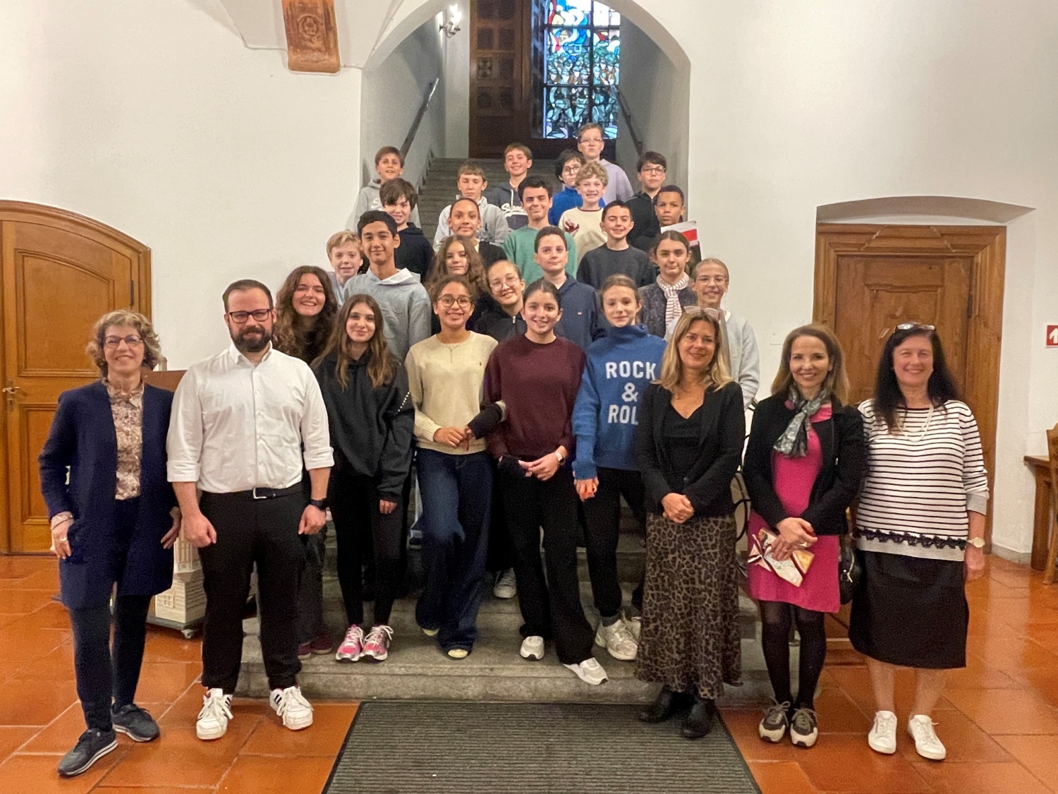 Im Rahmen des 35-jährigen Jubiläums des Schüleraustausches zwischen dem Vöhlin-Gymnasium Memmingen und dem Collège aux Lazaristes La Salle aus Lyon besuchten 24 französische Gastschüler mit ihren Lehrkräften unsere Stadt. Im Rathaus wurden sie von Herrn Oberbürgermeister Jan Rothenbacher herzlich willkommen geheißen. Während des neuntägigen Aufenthalts in Memmingen unternahmen die französischen Schüler zum einen Ausflüge nach München, Neuschwanstein und Ulm. Zum anderen lernten sie den Alltag in ihren Gastfamilien und an unserer Schule hautnah kennen. Und nun wird gespannt auf den Besuch der Memminger Schüler in Frankreich gewartet!