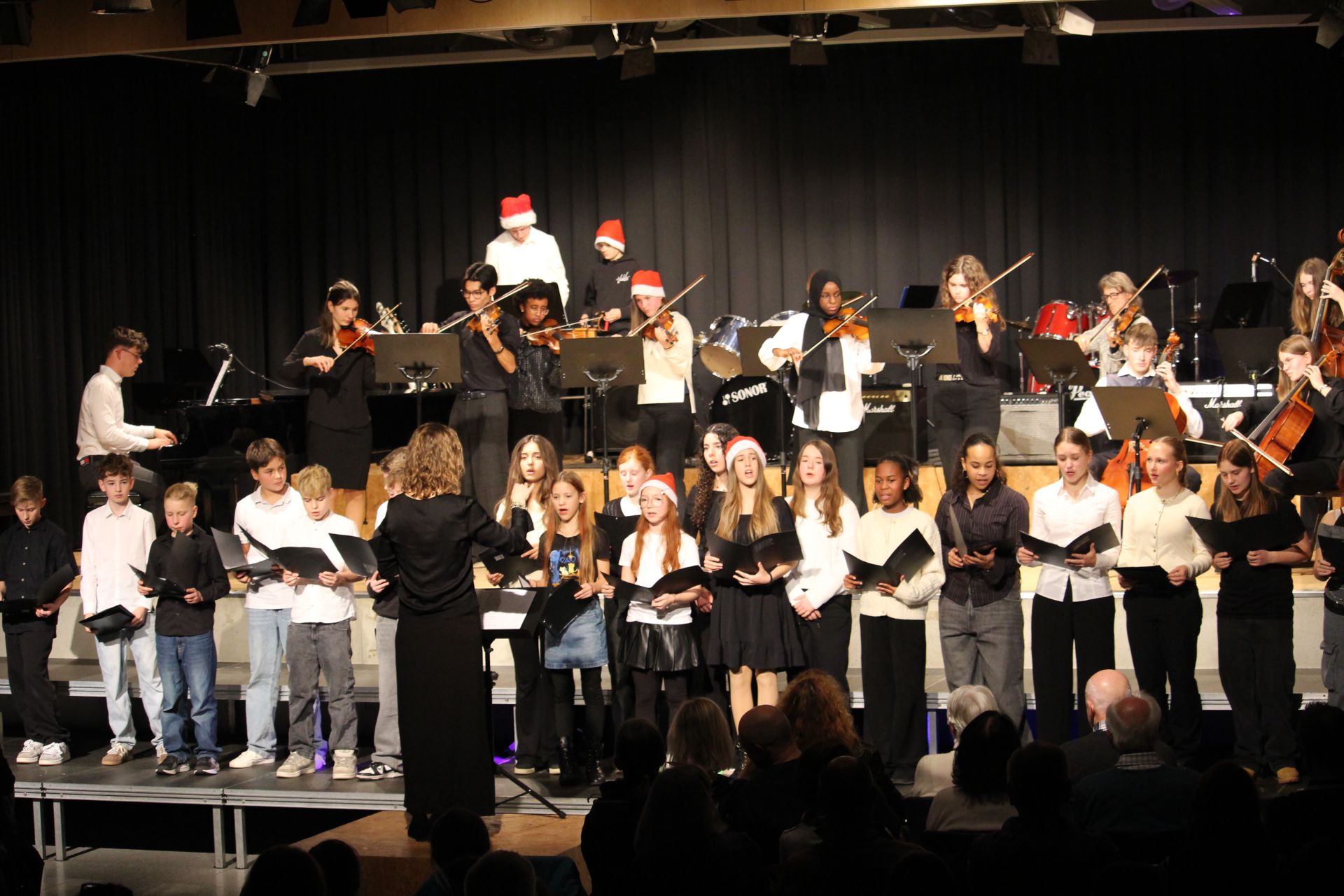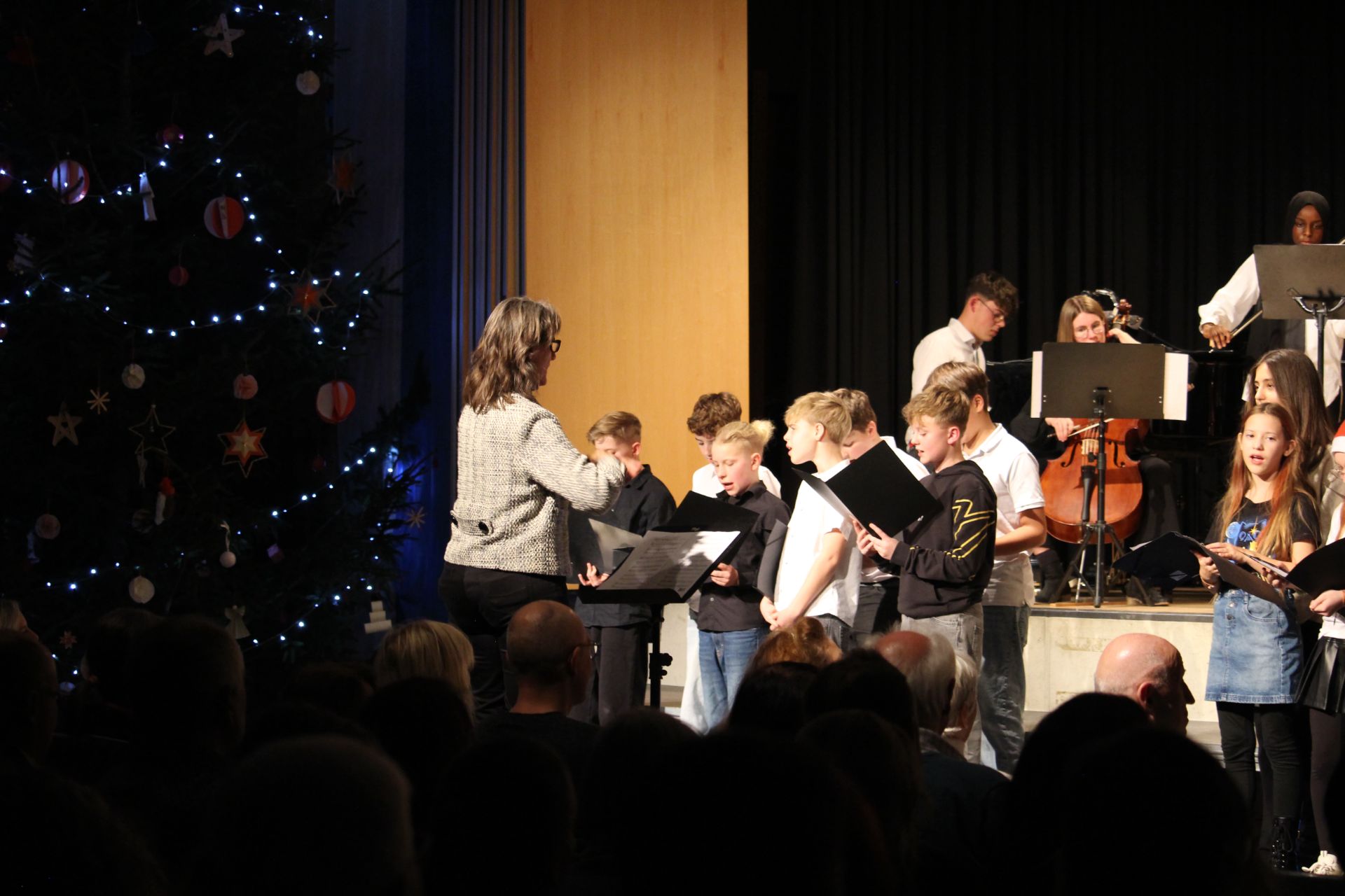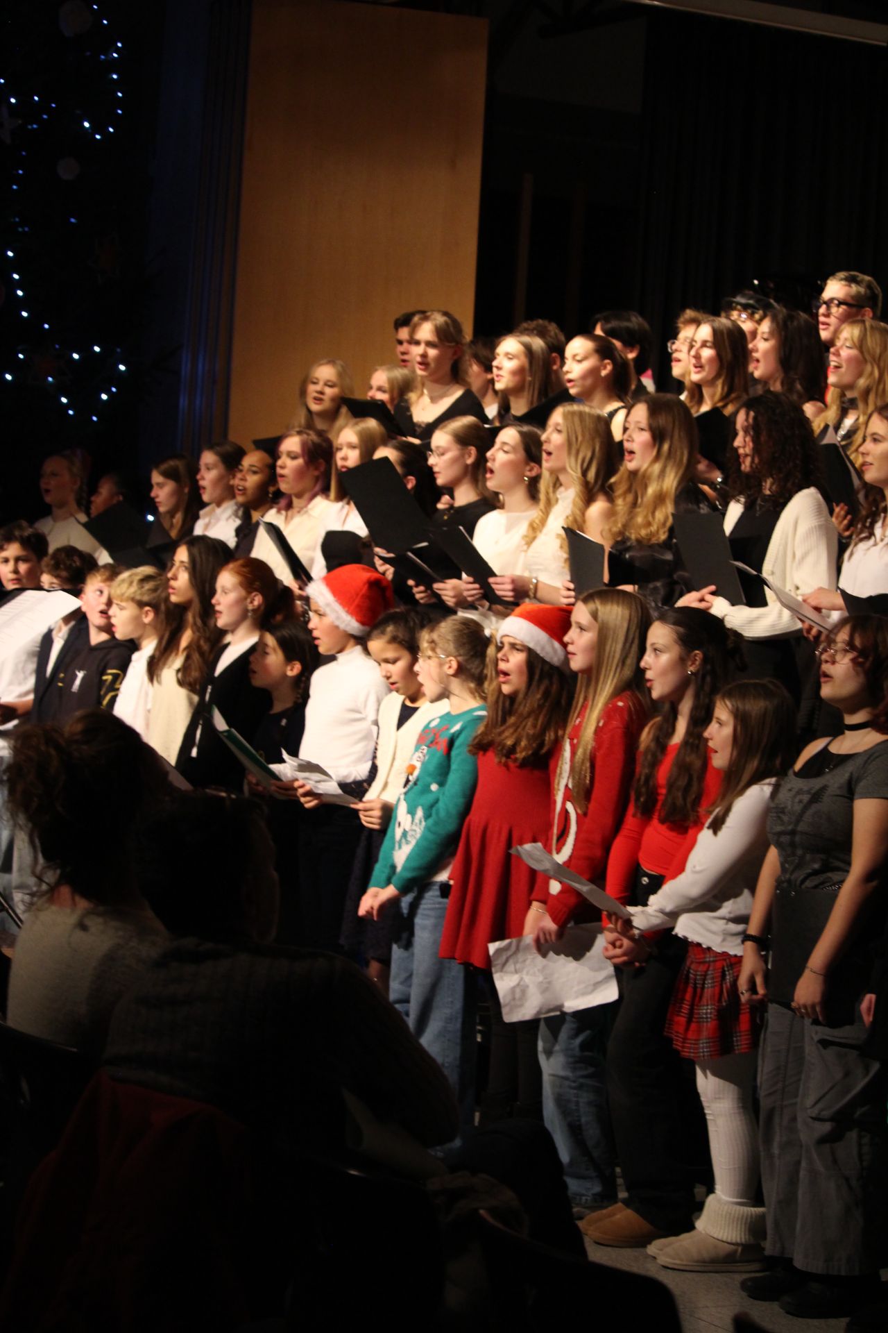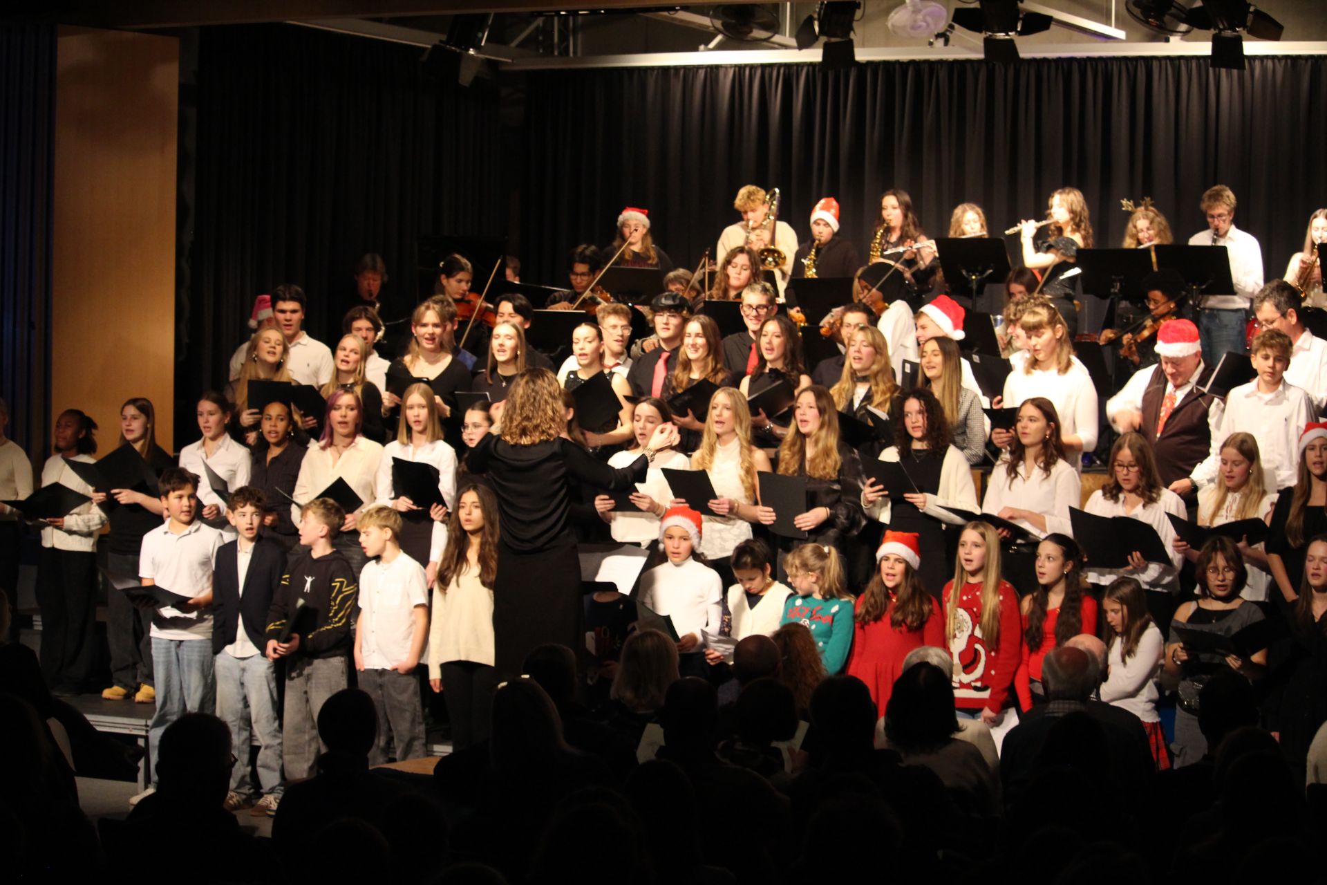Der zweite Teil begann zart mit dem Mittelstufenchor und der „Christmas Lullaby“, einem Wiegenlied voller Ruhe. Chor und Instrumentalensemble begeisterten anschließend mit „All I Want for Christmas Is You“.