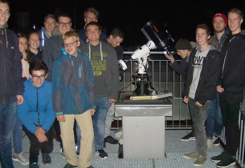 Großer Beliebtheit erfreuen sich auch die Beobachtungsabende mit unserem Schulteleskop auf der eigens dafür eingerichteten Plattform auf dem Dach unserer Schule. Eine Teilnahme daran ist über das Wahlfach „Junior Science“ oder den Oberstufenkurs möglich.