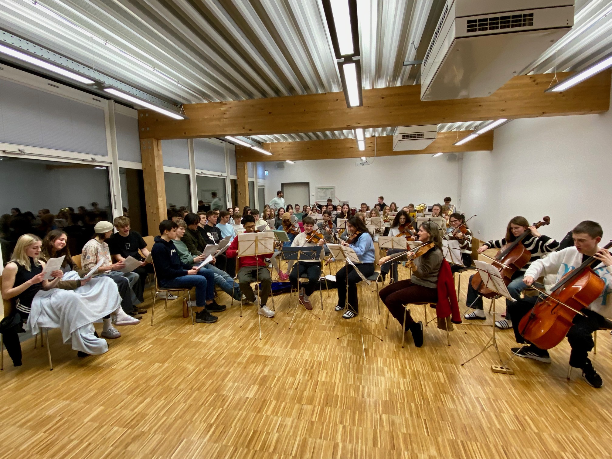 "Wohl und froh, wohl und fro-o-o-o-oh" - so haben die Probentage am 22.01.24 für den Chor begonnen, während sich das Orchester mit Tonleitern einspielte. Das Proben verschiedener Stücke mit Herrn Mayer, Herrn Kurz, Frau Freudling und Frau Schanbacher war sehr unterhaltsam und es gab viel zu Lachen. Beim Chor ging es sogar übers Singen hinaus, denn wir lernten zu Dirigieren!